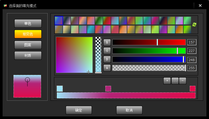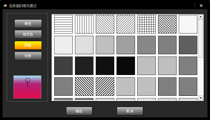 点击边、面、影中的填充模式按钮,弹出填充模式设置窗口。