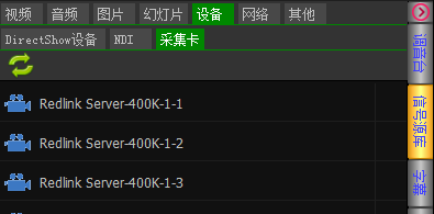 采集卡库窗口列出特别支持的采集卡,目前支持Decklink系列和Redlink系列采集卡。