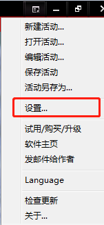 点击软件标题栏右上角主菜单按钮,弹出主菜单,选择设置菜单,弹出设置对话框。